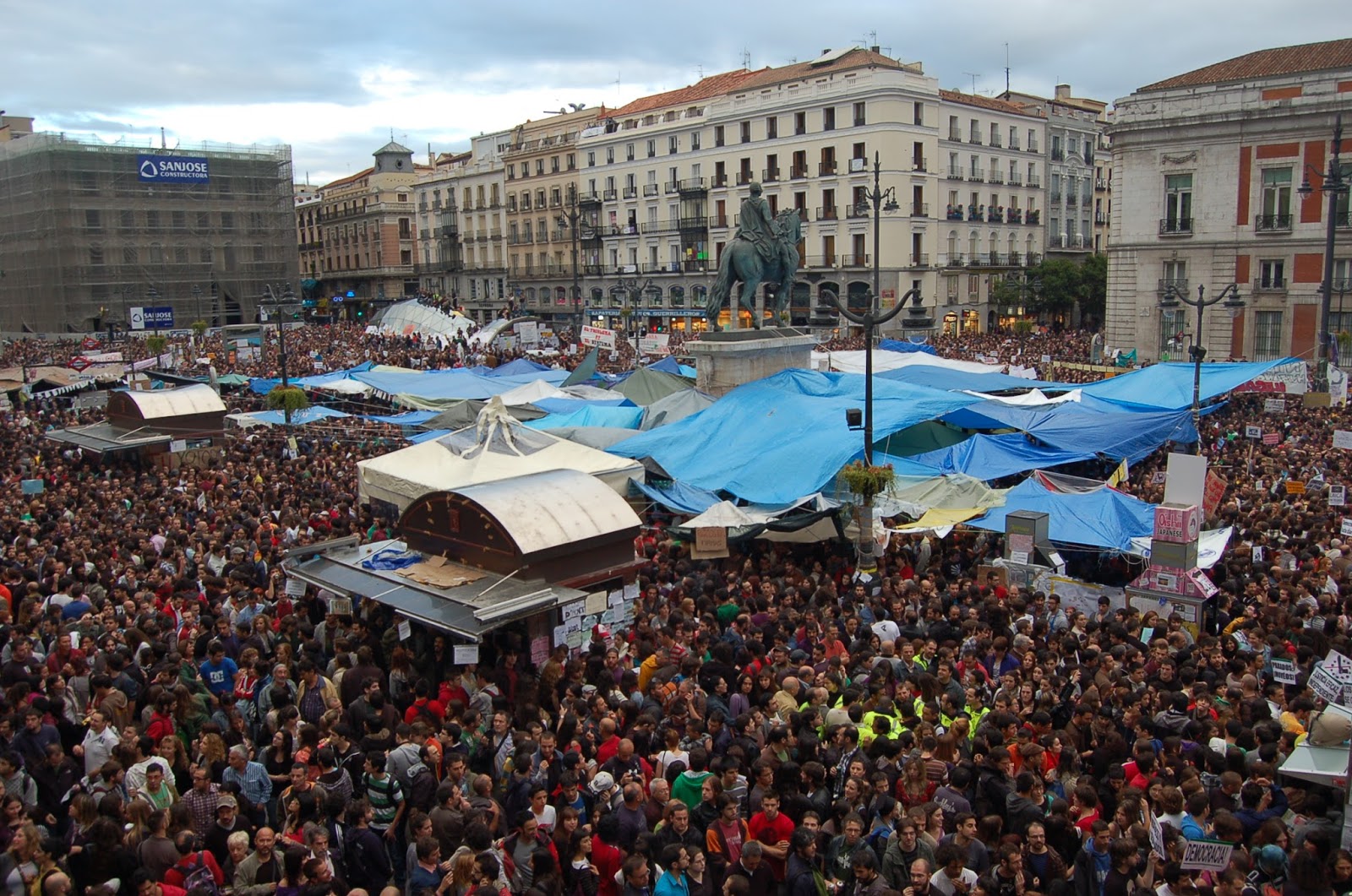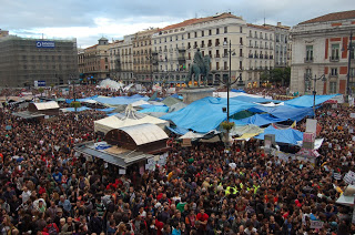 Una juventud más preparada, con mayor conciencia y más recursos intelectuales se planta y acampa en La Puerta del Sol de Madrid, cientos de acampadas y concentraciones vinieron después en todas las ciudades de España, las asambleas discutían y votaban propuestas, todas destinadas en una única dirección regeneración y refundación democrática, a estos movimientos se les unía cada vez más gente, ya no eran solo unos jóvenes indignados sino todo un país que despertaba de un sueño, donde brotaba la democracia de los surtidores de luz y la gente era todo clase Media acomodada, se empezaron a visibilizar los desahucios, la gente lo perdía todo, el paro golpeaba sin piedad millones de hogares, los jóvenes habían sido desposeídos de su futuro, su derecho a estudiar, a emanciparse, a tener hijos.
