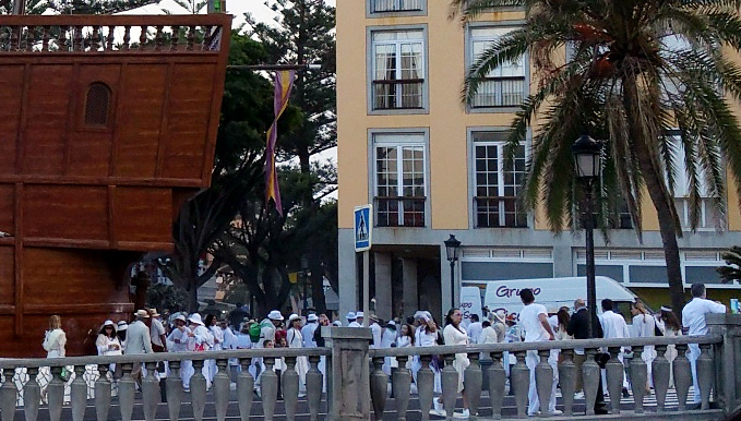 En nuestro segundo día decidimos visitar Santa Cruz, faltaba un día para los Indianos pero ya la capital parecía impaciente porque llegaran , mucha gente ataviada con ropa blanca , las calles llenas de banderolas cubanas, la música, anunciaban lo que sucedería al día siguiente y que sucede cada año desde la década de 1920. aunque no fue hasta el año 1966 cuando Los Indianos se integran de pleno derecho en el programa del carnaval Palmero.